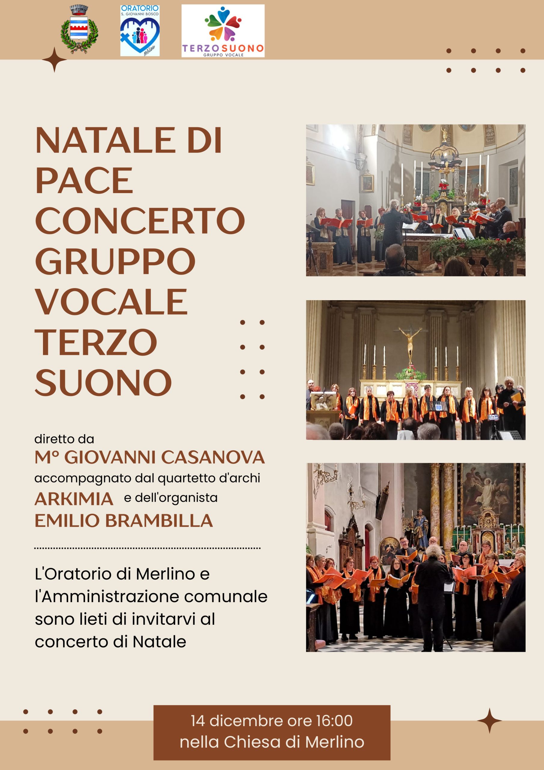Nella chiesa parrocchiale di Merlino (LO), il Gruppo Vocale Terzo Suono, diretto dal M° Giovanni Casanova, terrà il concerto di Natale.